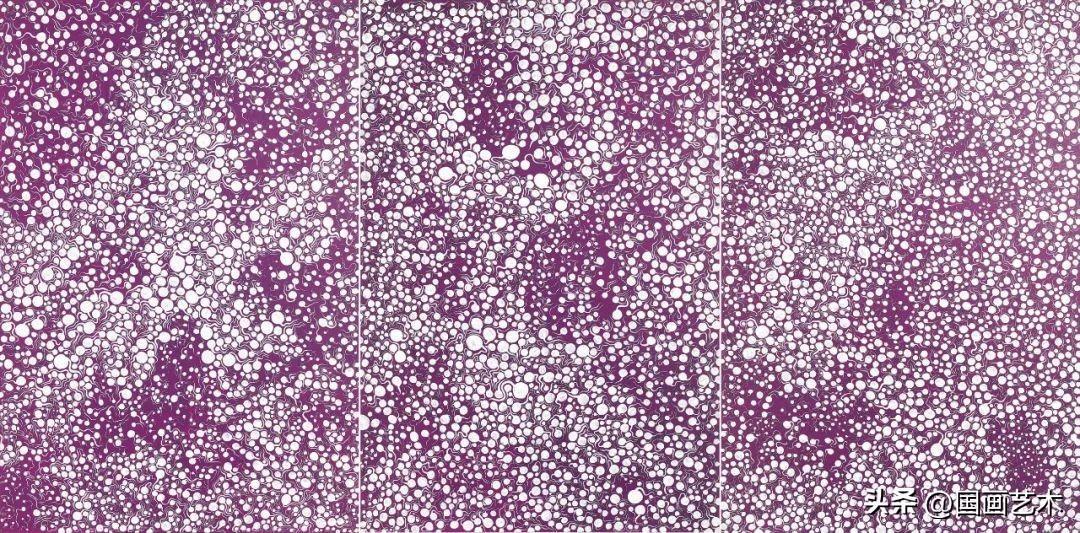 無論是神祕的星系、遊動的蝌蚪,還是即將萌芽的種子......這件首次現身市場、草間彌生作於1987年的三聯作《芽》呼應了她標誌性的視覺表達,將無限的可能性、生命力以及無形的相互聯繫等錯綜複雜的抽象概念轉化爲有形的藝術形態,如宇宙般深邃,通往無限,成爲永恆的一部分。這幅畫是草間彌生不斷探索宇宙萬物之根本的視覺表現,也是在這股力量的引領下,畫作通向宇宙無窮的生命力,預示永恆。