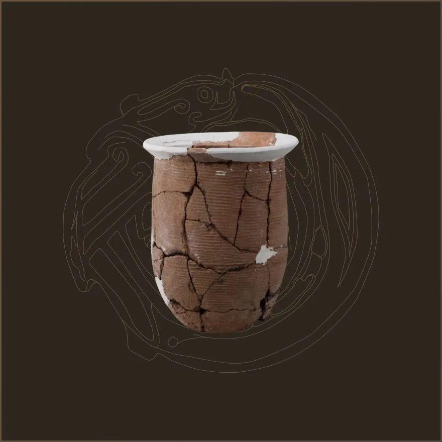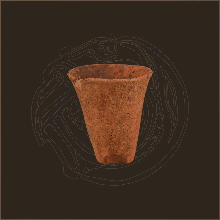 紅陶杯於三房灣遺址出土,爲夾砂紅陶,斜壁厚胎,是石家河先民用來飲水的日常生活用具。