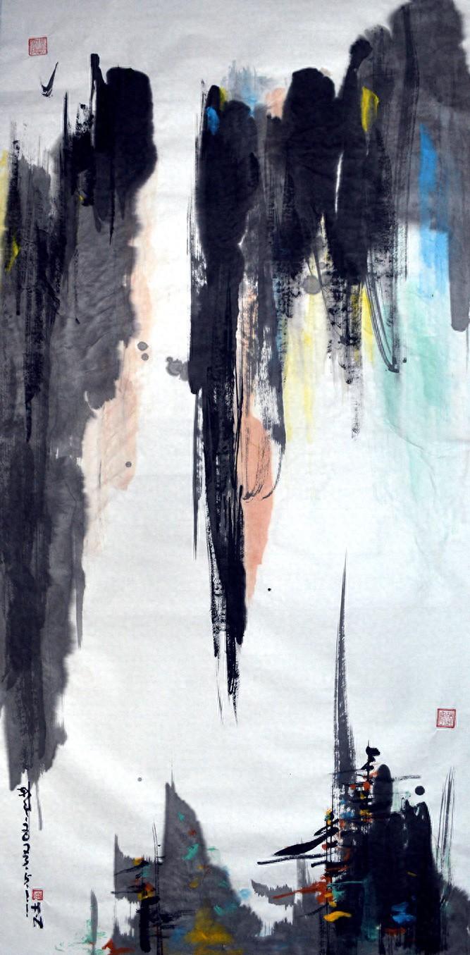 如何在繪畫中體現山高險峻又挺拔,唯有空靈絕境,對比反差到不可比擬的程度。從而拉開想象的遙遠與高聳,展現出無邊無際的再創造空間,任其飛躍馳騁。藝術就是我們精神層面的奠基石,上層建築建立在精神文化的累積上應用與發揮。藝術只是一個橋樑,其所起的作用完全靠思想認識與精神層面的理解與意識,藝術本身只是表現手段而已。