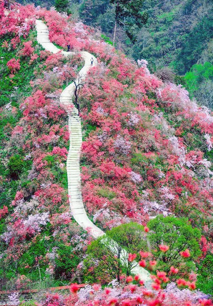 在山邊小溪旁,最爛漫的是那滿目的映山紅。那無邊的密密的花兒啊,紅得熱烈,紅得悲壯,似那啼血的杜鵑,又仿若出閣女子的嫁衣裳,鋪滿整個大地,彷彿要將那一地的火紅直鋪到天邊。