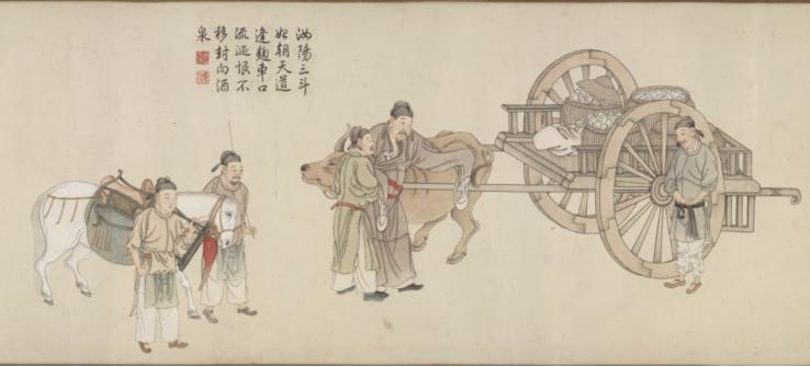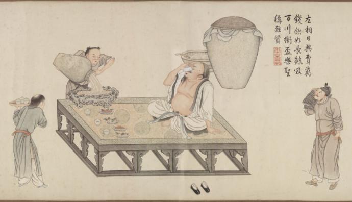 第二位“酒中仙人”是汝陽王李璡,他飲酒三鬥以後纔去覲見天子。路上碰到裝載酒麴的車,酒味引得他口水直流,恨不得把自己的封地移到水味如酒的酒泉郡。