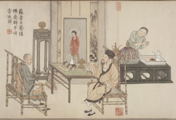 蘇晉長齋繡佛前,醉中往往愛逃禪。