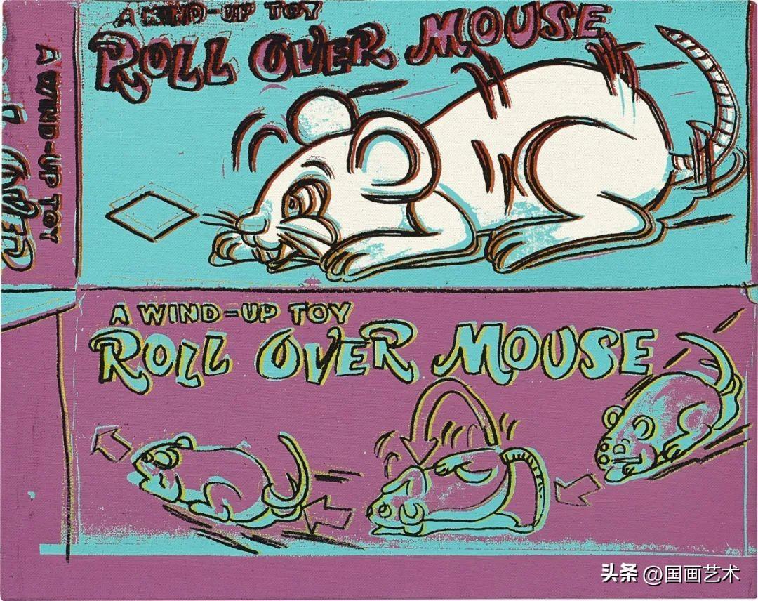 此作品描繪的滾動老鼠原型爲日本廠家Yoneya生產的機械玩具。比起玩具本身,沃荷刻意選擇外包裝紙盒上的廣告圖案作爲其作品的參照。這一選擇與其1960年代知名的「瑪麗蓮 · 夢露」及「康寶湯罐頭」系列中所反映的顛覆傳統藝術家身份、以商業生產方式進行藝術創作等理念緊密相連,同時也反映了冷戰後的美國社會文化氛圍。