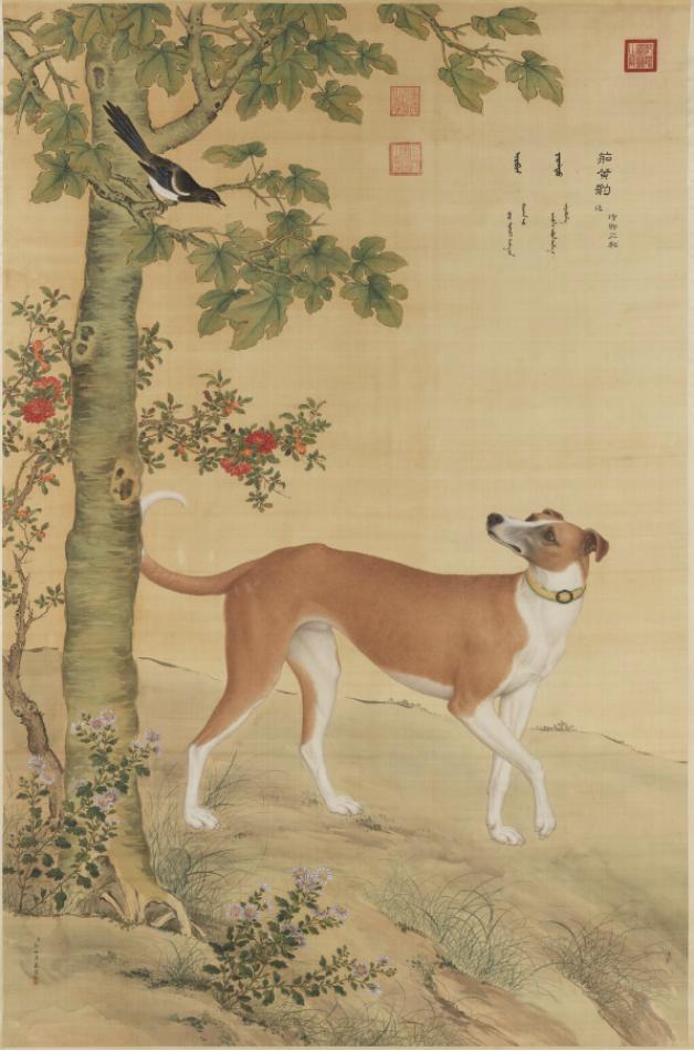 滿清人擅長騎射,自然也鍾愛獵犬。相傳滿清皇室素有養狗的傳統,不僅設立了專門的養狗機構,還特意招募“管理養鷹狗處大臣”、“養狗處統領”等專職官員進行管理。此外,清代宮廷制定了相當多的養狗規定,而且還十分樂於給狗狗畫像。