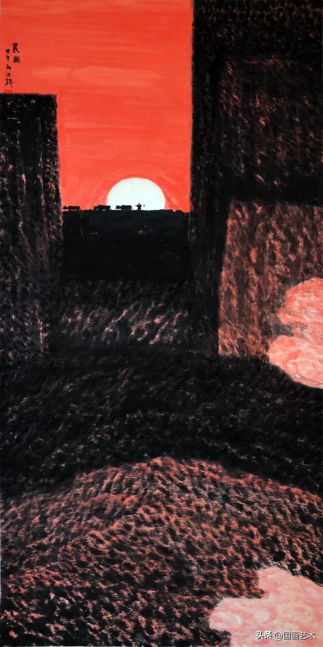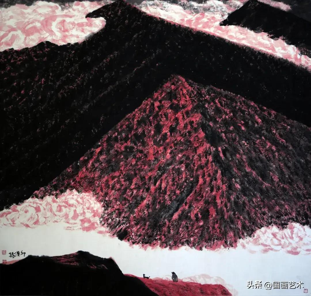 然而,邱漢橋的山水畫並非僅僅是對大自然的簡單描繪。他通過獨特的藝術手法,將自然與心靈融爲一體,創造出一種獨特的藝術境界。其中最引人注目的,便是那抹鮮豔的紅色。這紅色並非山的真實顏色,而是邱漢橋內心對自然的感受和表達。它如同藝術家的心血,流淌在每一幅作品中,爲畫面增添了無盡的生機和活力。