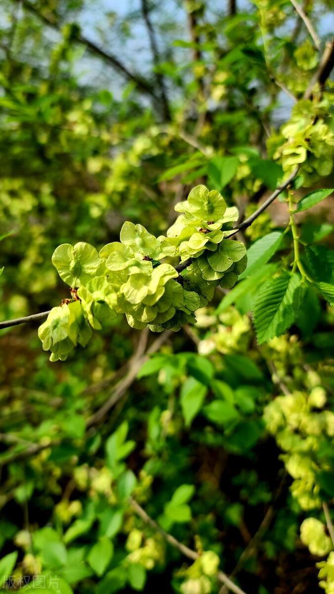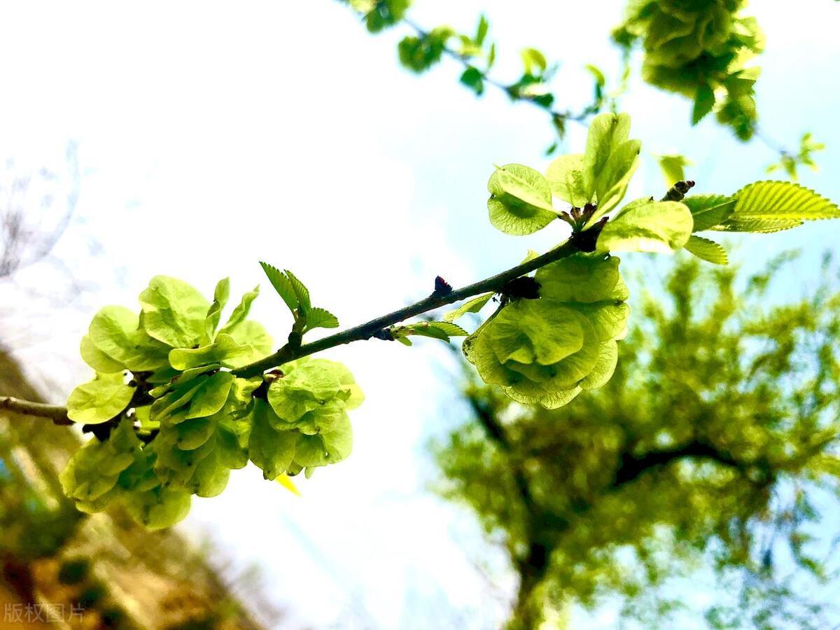 楊柳翠綠鶯啼鳴,榆錢滿枝綴春景。