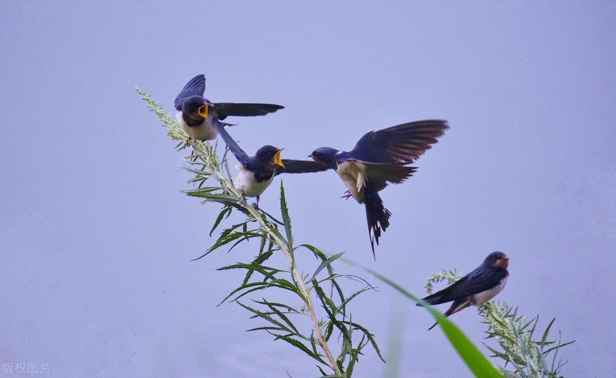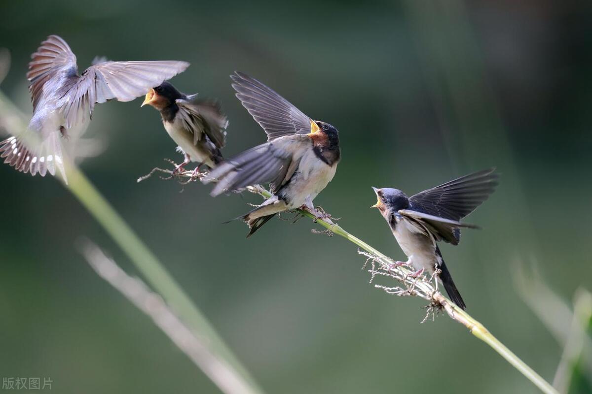 捉蟲除害莊稼旺,雛燕出巢空翱翔。