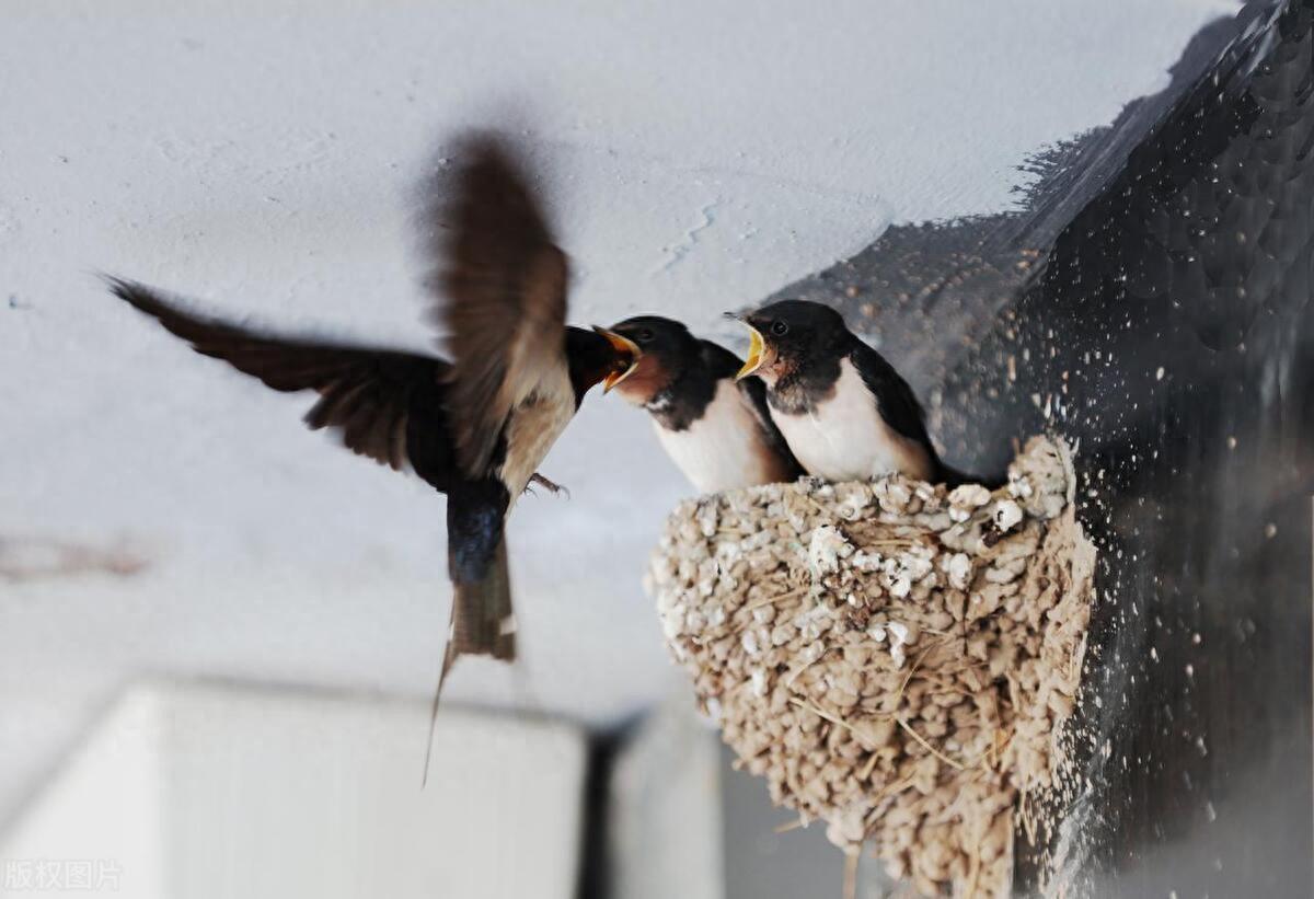 銜泥絮草築新巢,育雛繁衍倍辛勞。