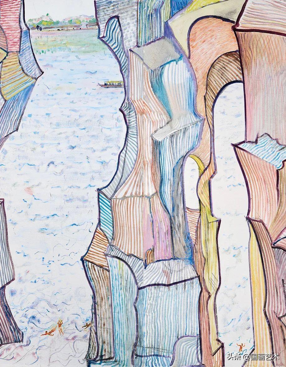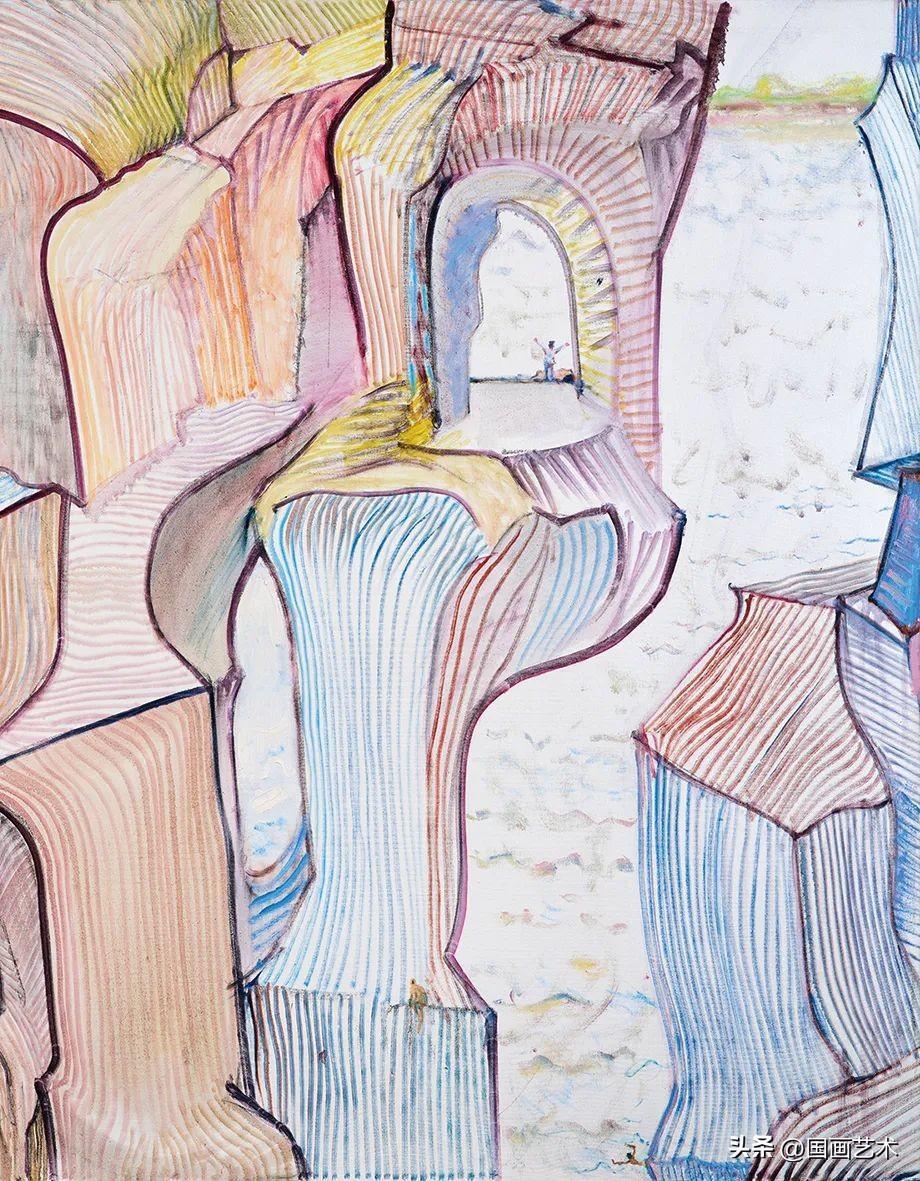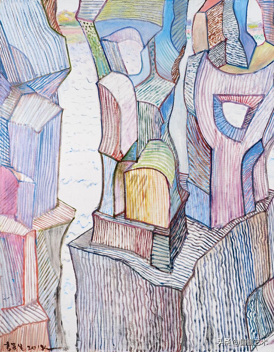 《巨石陣》筆下景緻取材雲南石林,此時距畫家首次赴滇已時隔四十年,袁運生再次將畫筆聚焦在旖旎的邊疆風光題材。雲南石林屬喀斯特地貌,與英國“石林”景觀迥異,袁運生取名《巨石陣》有將遙隔萬里,不同文明卻同樣鬼斧神工之自然奇蹟進行對話之意。畫家借“本土的形象”去超越千萬年的時間和空間,化身爲人類共有的精神和道德的象徵。在作品表現上,他希望將西方現代主義繪畫的特徵,諸如結構主義以及杜布菲(Jean Dubuffet)原生藝術中最純粹的藝術形式,以充滿運動感的表現語言與中國風景相結合。《巨石陣》極具抽象意味,作品中線條的節奏和韻律不僅是對於線之生命力的重申,也是對於形體之意味的表達,自在無礙,自由通達。