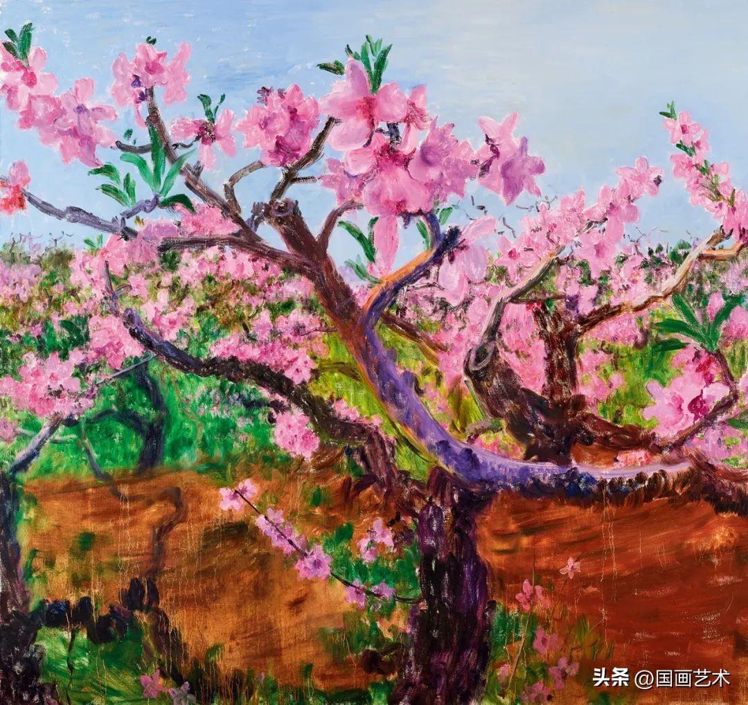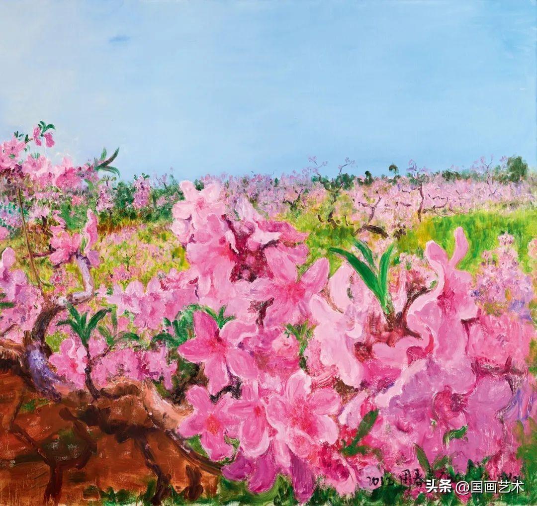 周春芽2005年時在四川龍泉山看到了漫山遍野的桃花:大量的粉紅色,帶着讓人血脈賁張的妖冶和原始生命力量的律動。其“野”、其“豔”,深深擊中藝術家的表達欲。在中國繪畫傳統中,桃花自古便是中國文人情感寄託與文思靈感的泉源,《詩經》以“桃之夭夭,灼灼其華”形容春日桃花之繁茂,延引爲女子的美麗。周春芽則更爲純粹,“我的畫都是關於激情和浪漫的,慾望是人類的一個組成部分,是我們與生俱來的東西。更重要的是,我們對性的感情和慾望都是活力的體現,象徵着全盛時期的生命。”