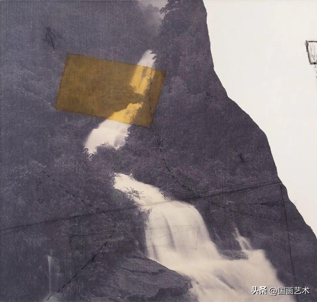 《董其昌計劃-4》創作於2007年,以兩幅畫布拼合而成,總長近5米,宛如巨大的國畫手卷,引導觀衆視線從左至右,讓視覺和心靈在畫面上有了遊走的維度。從左側高清數碼打印的“真山水”,逐漸過渡到中央蒼涼的禿峯,再至右上方如漫畫般的夢境,藝術家巧妙地引導着觀衆一步步深入其創作語境,並在藝術語言的切換中,痛陳科技發展對環境的破壞,同時挑戰整個古代文人畫的傳統。《董其昌計劃-4》的創作正基於這一脈絡,尚揚首次使用了現成山水的圖像,這種二手現實所展示的高山流水遙遠、虛妄,慢慢退居一隅。尚揚還在上面貼上黃色的矩形布,暗示了它們“都經過了重新剪貼和拼湊,因爲它們已不再完整和統一,正在被消解”的現實。