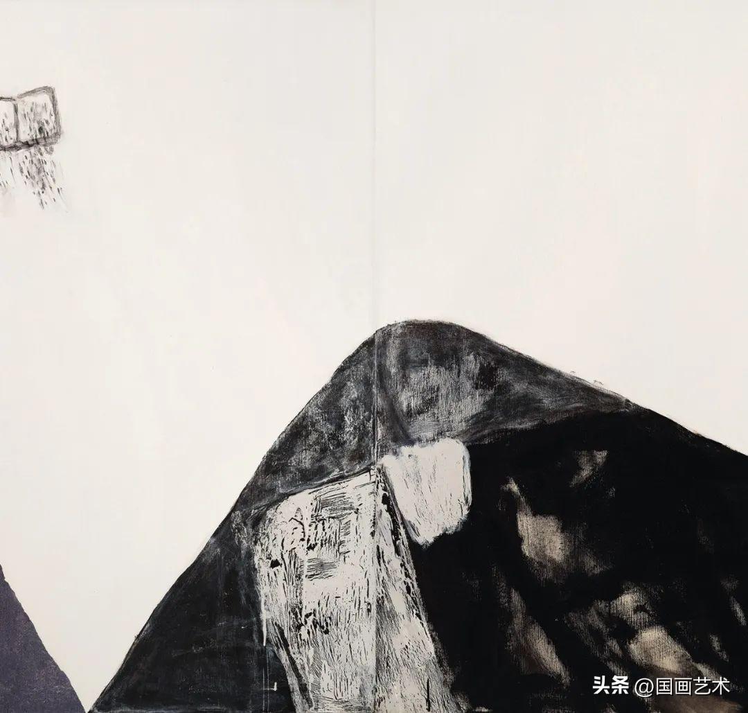 此件《我的風景》是很能體現中國哲學中以小見大,以我見天地的感受的。重巒疊嶂、草木叢生、澗瀑期間的宏大感受,可能只是幾塊佈滿蒼苔的溼潤溪石。生命在乾溼間榮枯並示,說得正是“天地不仁,以萬物爲芻狗”——燦爛的恣意生長,放肆而熱烈;幽暗的形容枯槁,頹靡而消散。在作品中劉煒用抽象的語言,保留了他常用的“骷骨”符號,讓生命的意味變得戲謔而深刻。這是屬於劉煒的高度思緒化的風景,“於天地之外,別構一種靈奇。”