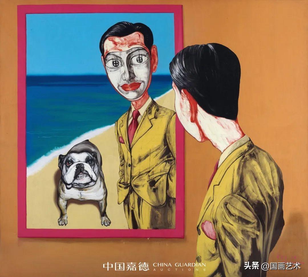 《面具系列No.17》即是其中非常有代表性的一幅。它藉由照鏡子的經典隱喻,呈現了市場經濟大潮下,中國人對自身生存狀態,及社會急速變革的審視和茫然。縱觀曾梵志九十年代的“面具”作品,偶有雙人像、鏡子、狗、畫中畫等主題,但於一幅畫中集合如此衆多元素的,僅此一件。
