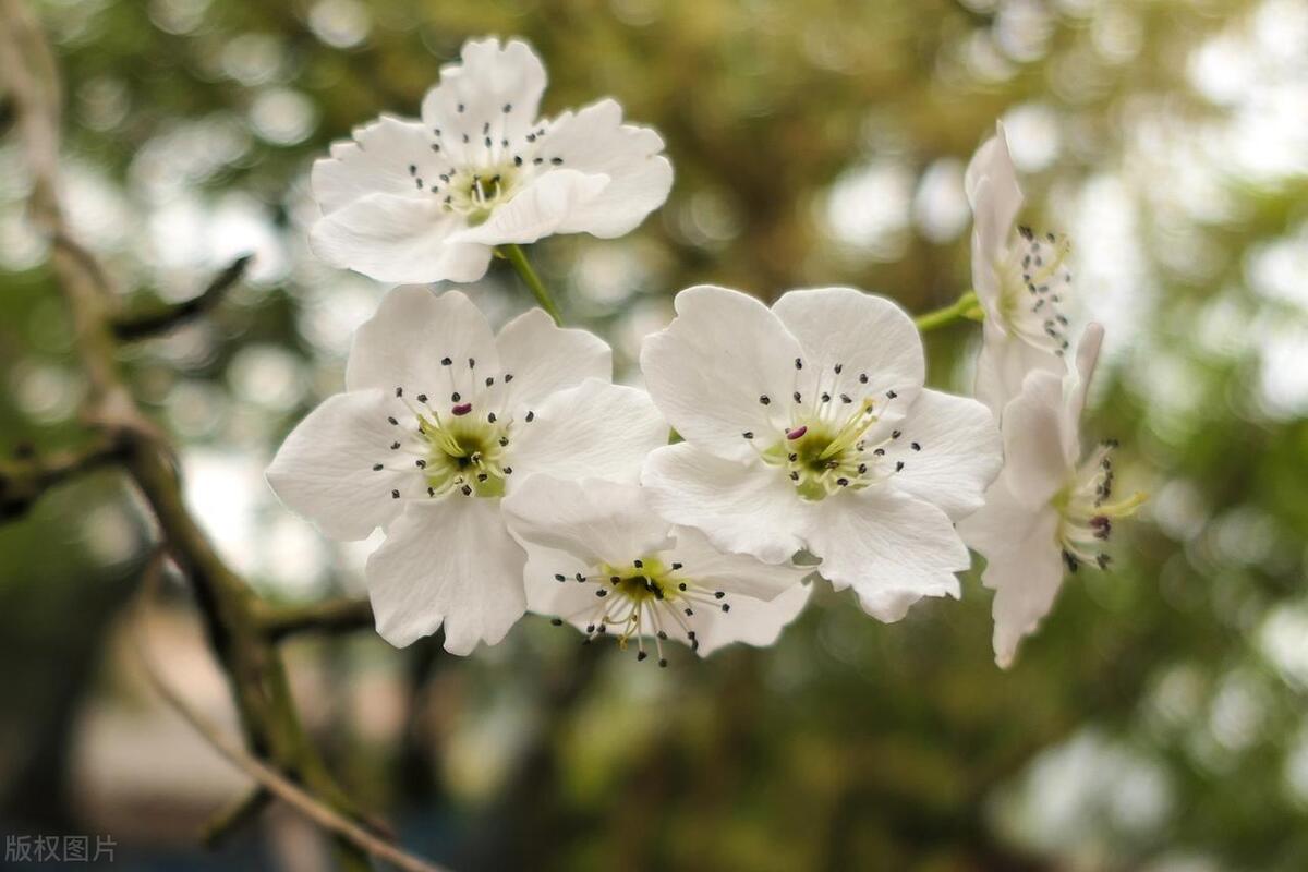 風拂雨潤楊柳綠,梨花飄雪似天仙。