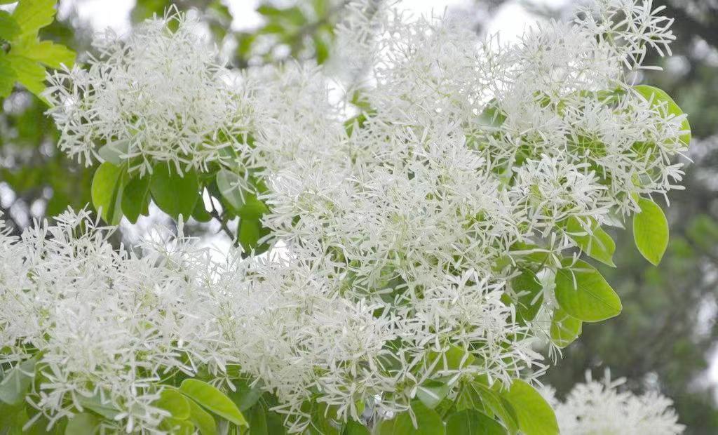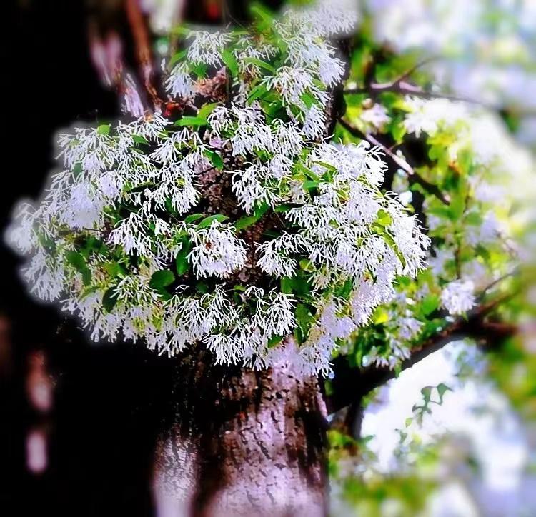 穀雨時節花珍奇,青枝繁盛飄白米。