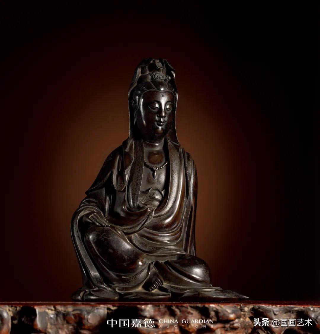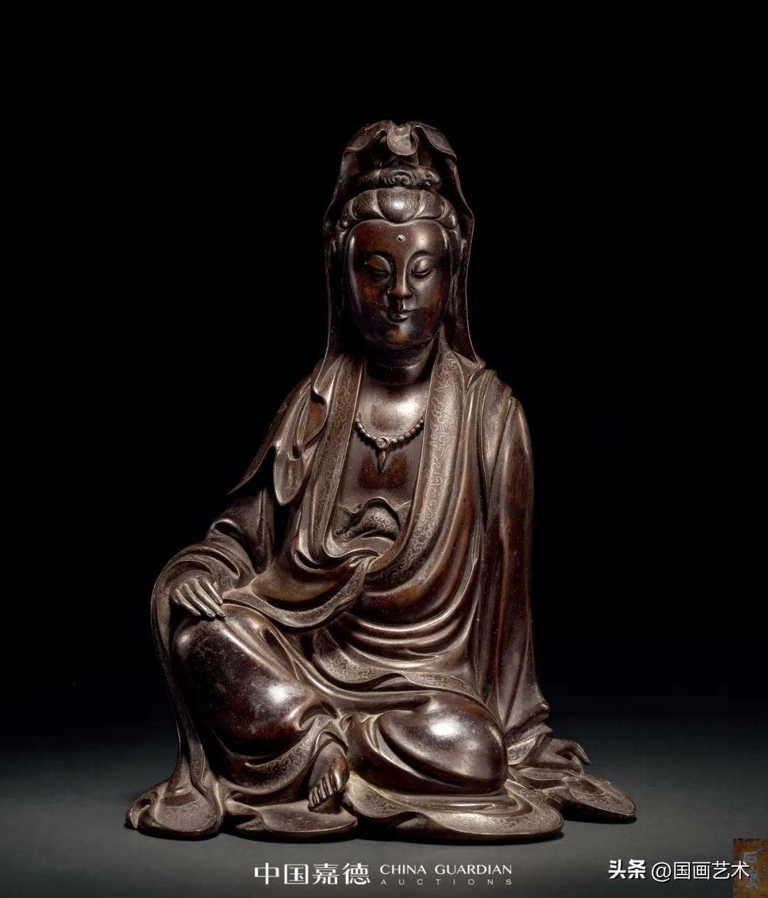 石叟 銅嵌銀絲自在觀音坐像