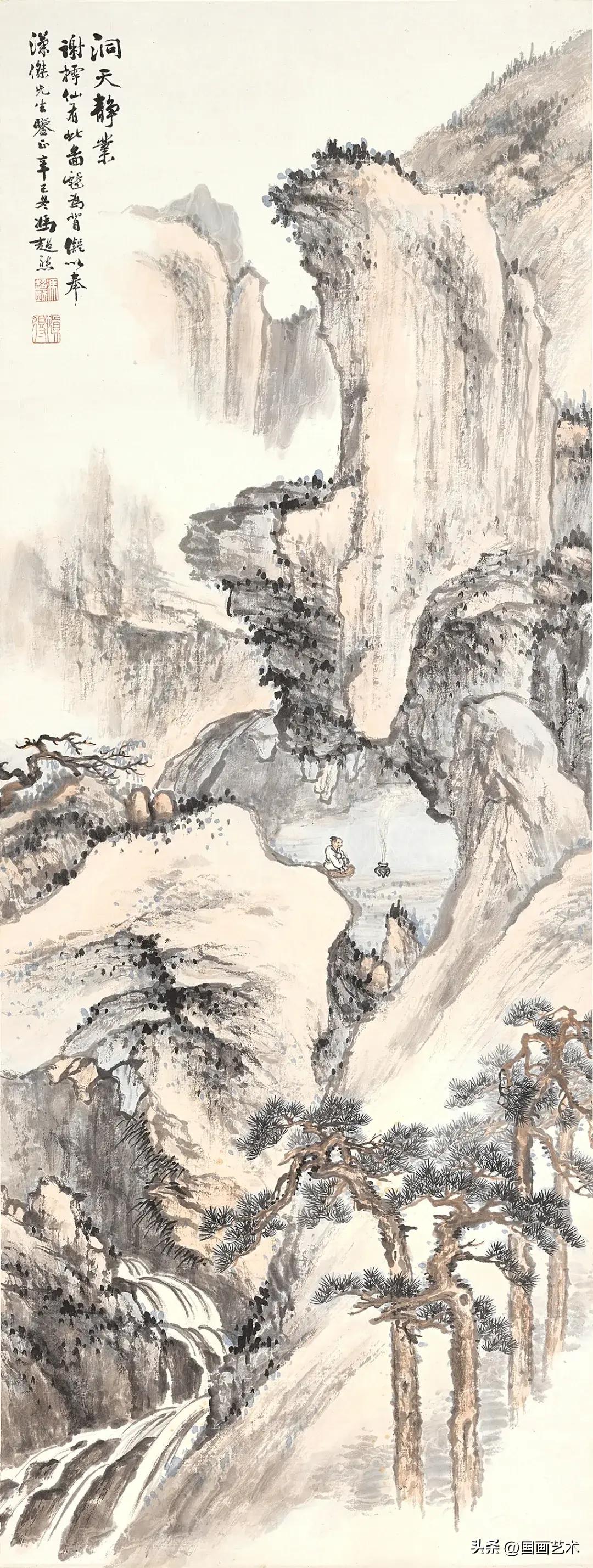 款識:洞天靜業。謝樗仙有此圖,戲爲背擬,以奉漢傑先生鑑正。辛巳冬,馮超然。