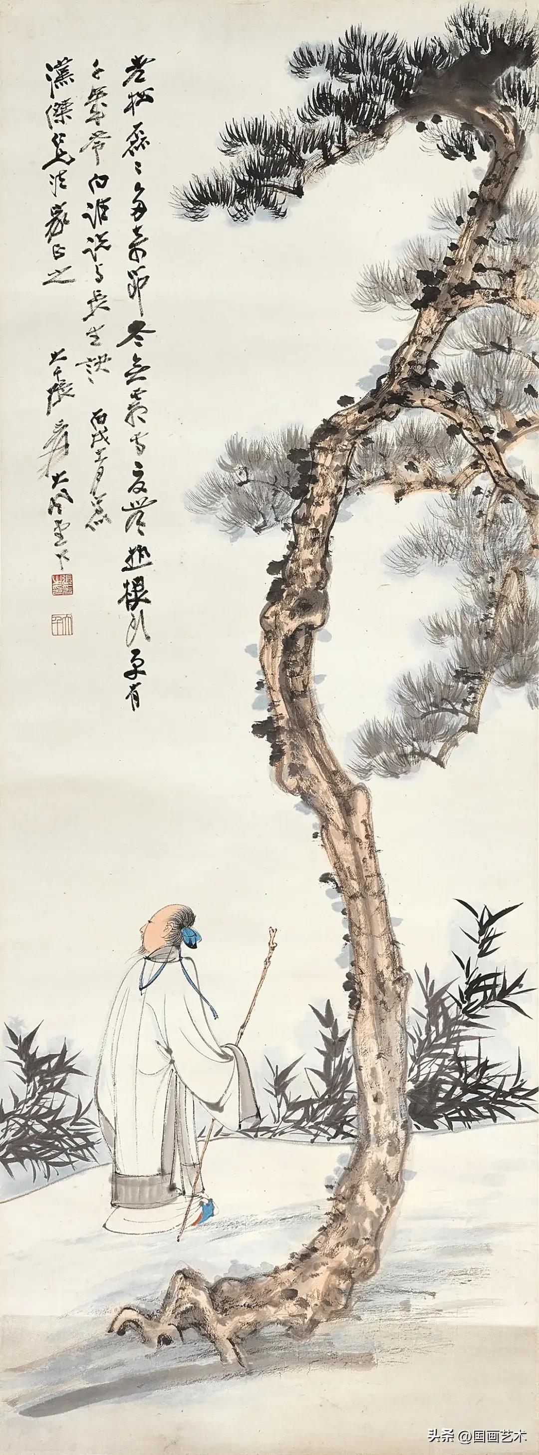 款識:老松磊磊多奇節,冬無霜雪夏無熱。根頭更有千歲苓,向誰說與長生訣。丙戌十一月,寫似漢傑仁兄法家正之。大千張爰大風堂下。