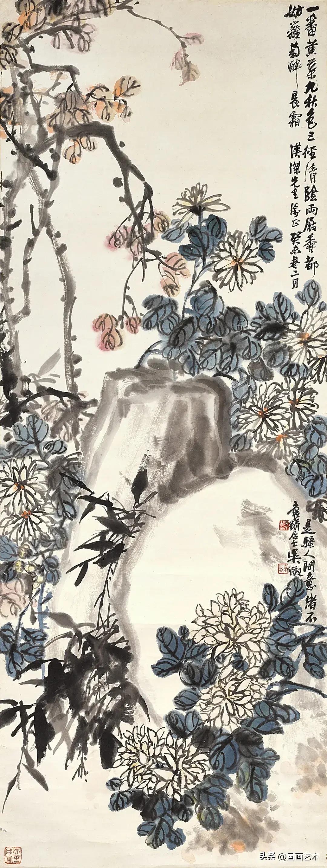 款識:一番黃葉九秋色,三徑清陰兩屐香。都是騷人閒意緒,不妨籬菊醉晨霜。漢傑先生屬正。癸未春二月,袌鋗居士吳徵。