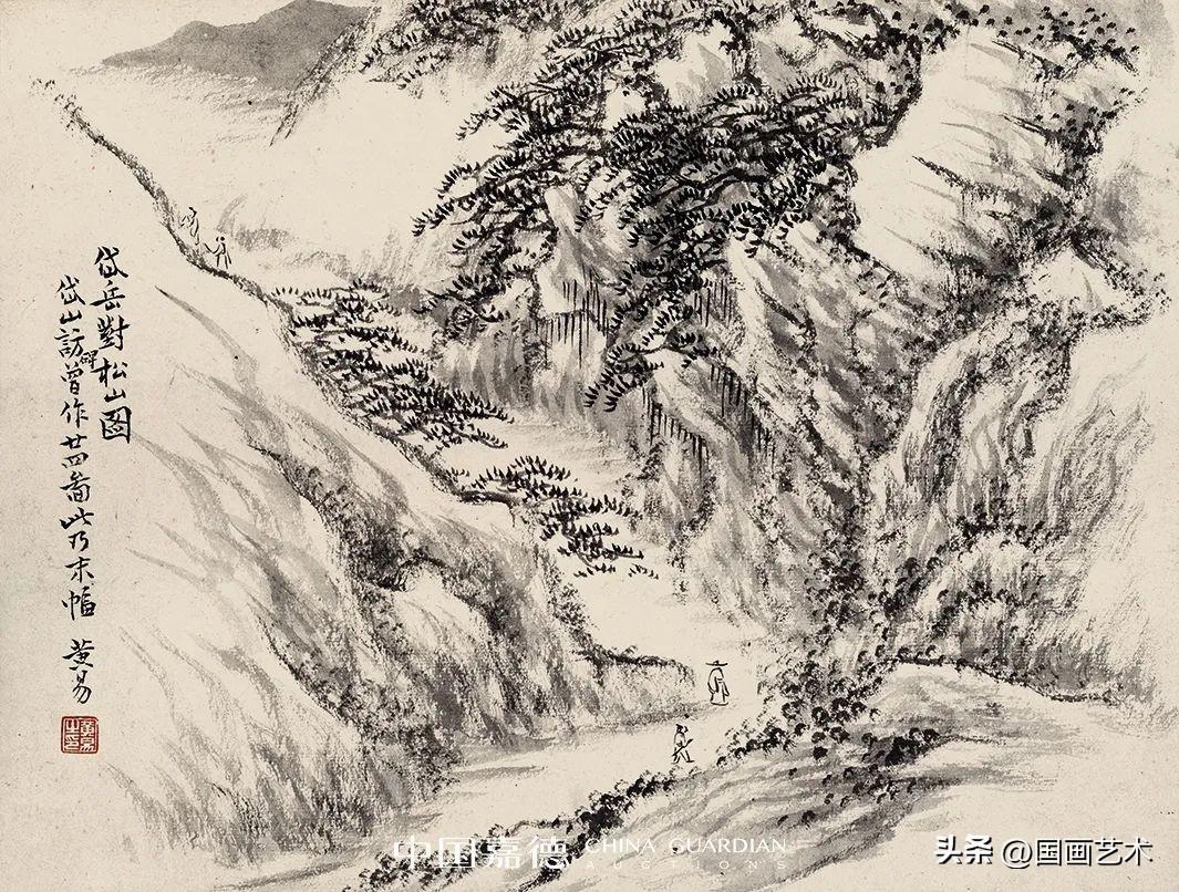 岱嶽對松山圖。岱山訪碑曾作廿四圖,此乃末幅。黃易。 鈐印:黃易之印