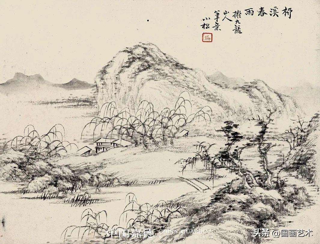 柳溪春雨。擬九龍山人。小松。 鈐印:易