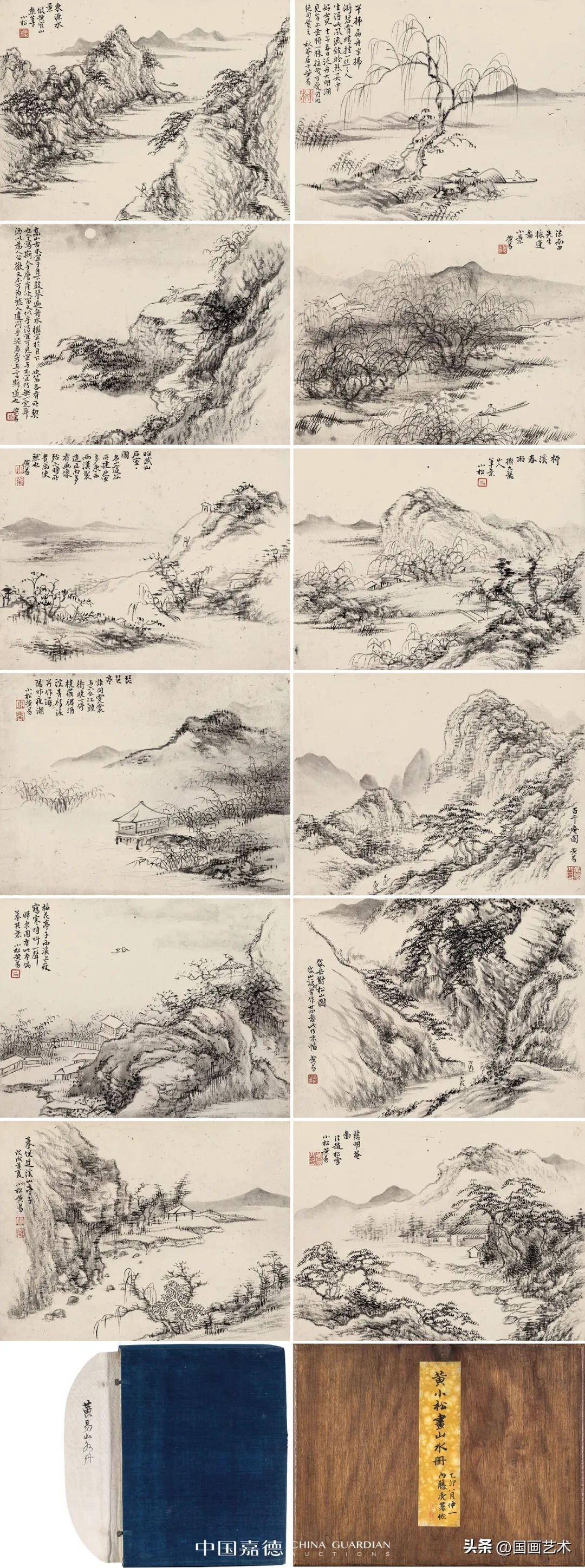 黃易此冊十二開仿古山水,構境老到,或取古人詩意,或仿趙孟頫、倪瓚、王蒙、王紱、惲南田等古人筆法,或爲自身遊歷過的實景山水造境,三者水乳交融,生動和諧。