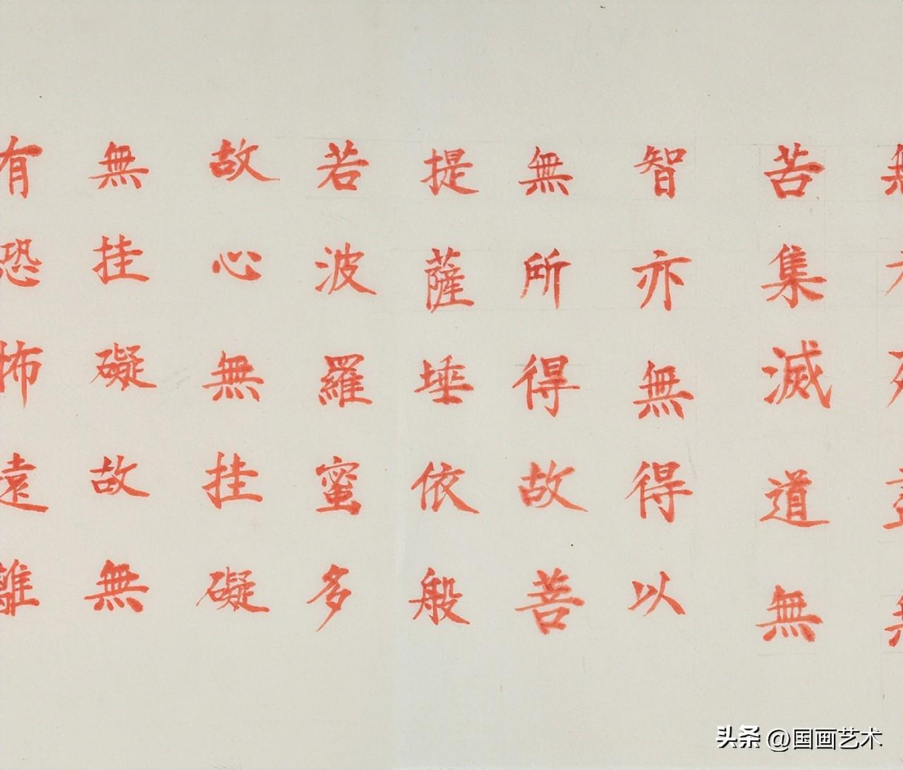 《般若波羅蜜多心經》,簡稱《心經》,是佛教大乘教典中一部文字短少,詮理卻深奧微妙的經典,僅以二百六十個字,濃縮了六百卷大般若經的要義。歷代帝王、將相、高僧大德、書法家、文學家,多崇尚寫《心經》,常書不輟。遙想已爲花白老人的溥儒,心懷對生母的殷殷思念,刺血書心經,追遠永慕,祈爲冥福,字裏行間透露的虔誠和執着,讓人動容。