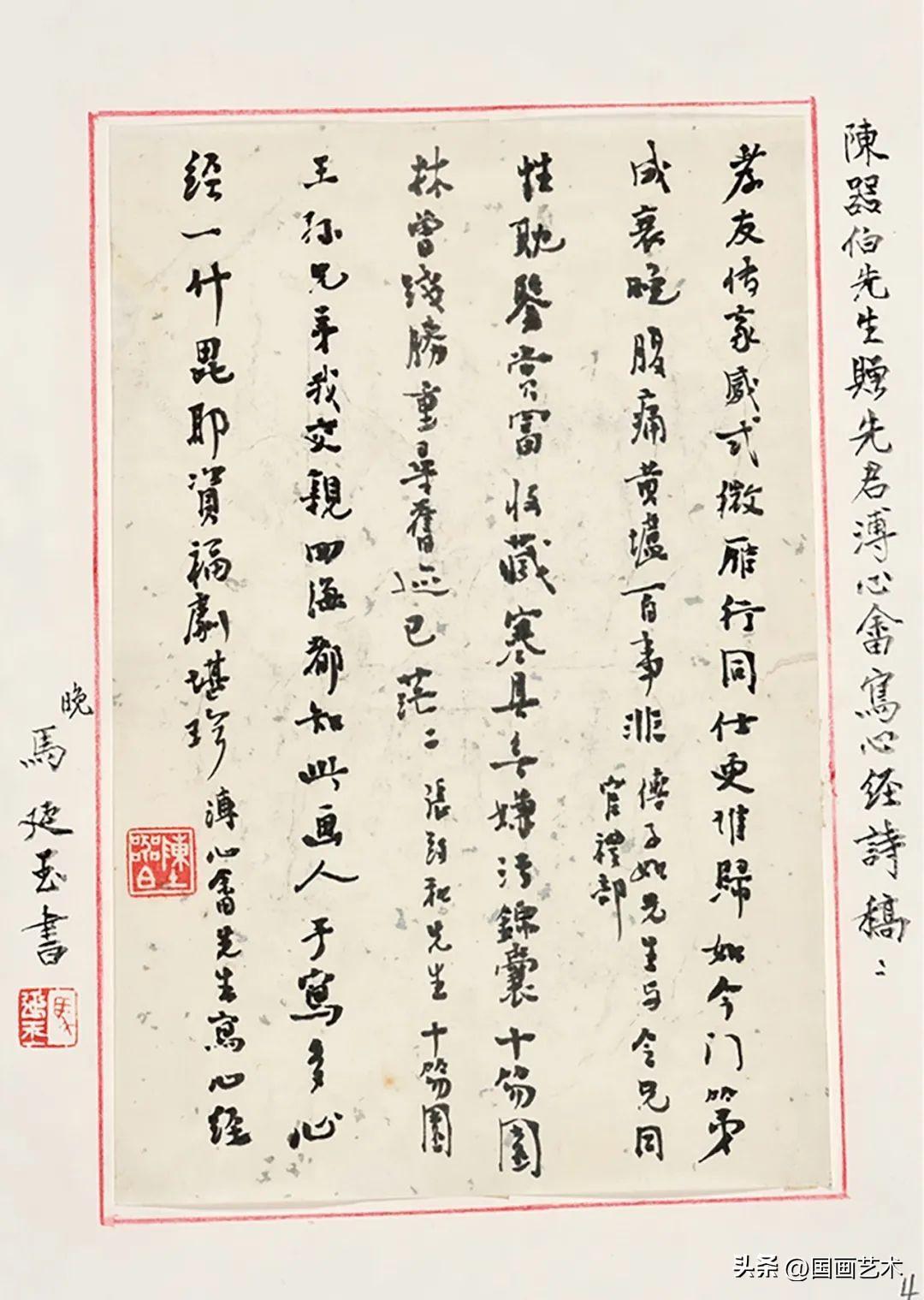 另附陳器伯七言詩1頁,談及溥儒所書心經,據馬延玉題跋可知爲題贈馬士良之作。