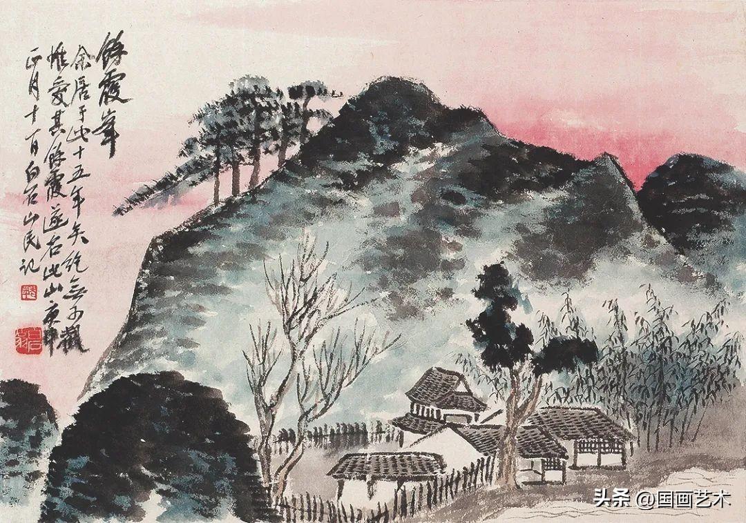 (五)舊村。此村居平吉大阜之間,他日須編入借山圖。白石老人。 鈐印:老蘋