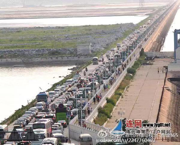 注:連雲港攔海西大堤-填海造陸長6700米,寬12米,高15米;是目前我國最大的攔海大堤,歷時8年建成,於1996年12月正式建成通車。宛若蛟龍潛水臥海,聯接南北,兩岸天塹變通途,巍巍壯觀。攔海西大堤建成後,連雲港港區面積由3平方公里擴大到30平方公里。