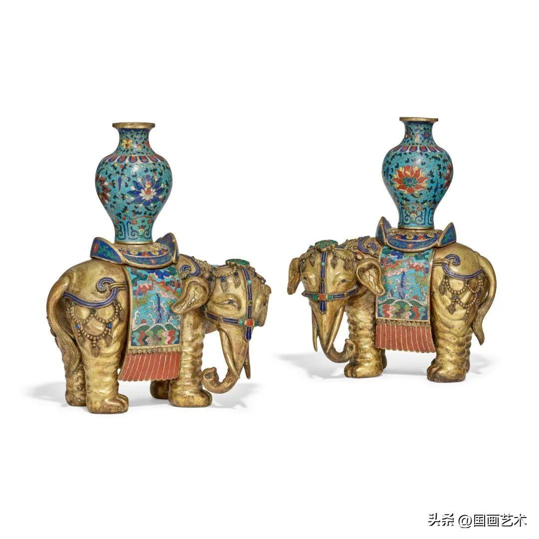 掐絲琺琅和內填琺琅 “大象與花瓶”擺件