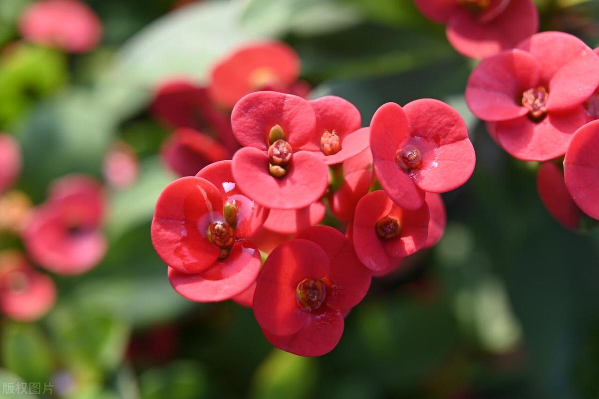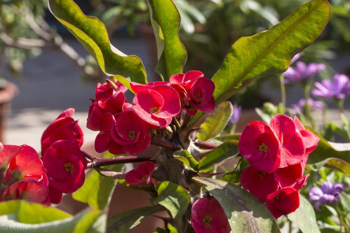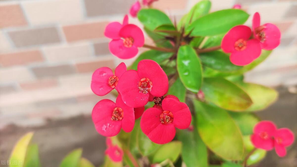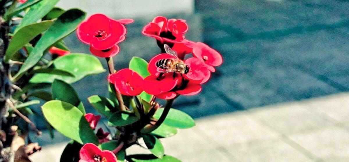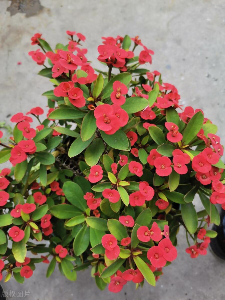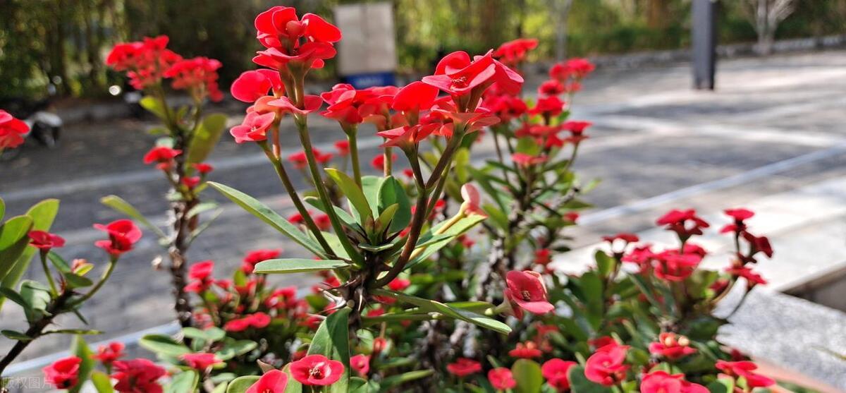 注:虎刺梅又名鐵海棠,原產非洲馬達加期加島。喜溫暖溼潤和陽光充足環境。耐高溫、不耐寒。以疏鬆、排水良好的腐葉土爲最好。冬季溫度不低於12℃。 虎刺梅勇猛儒雅謂忠誠,青莖刺枝花珍貴。倔強而又堅貞,溫柔又忠誠,勇猛又不失儒雅。虎刺梅大概是最小巧的花朵,不像杜鵑花那樣燦爛似錦,也不如水仙那樣純潔高雅,更比不上牡丹的豔麗富貴,卻也活得像模像樣,枝頭上依然開着小花蕾粉嫩可愛,入花木凋零的冬季,只有虎刺梅凌寒不敗,幾朵鮮紅的小花綻放其間,愈顯得風姿綽約,倒給居室增添了不少春意。鐵灰色的虯枝,堅硬勁枝若斧削成,尖硬的針刺佈滿了枝幹,骨力昂然地挺出一個凜然不可侵犯的季節意象:枇杷樣的葉子嫩而綠,修而長,如今已是綠油油、滿盈盈的一盆,將人自然引入琶音黯然、美人何在的深入懷想;枝頭蝴蝶似的小紅花,每兩瓣爲一小朵,再組成不大的一簇,夏綠冬紅的似着癡守不棄的愛之誓言。