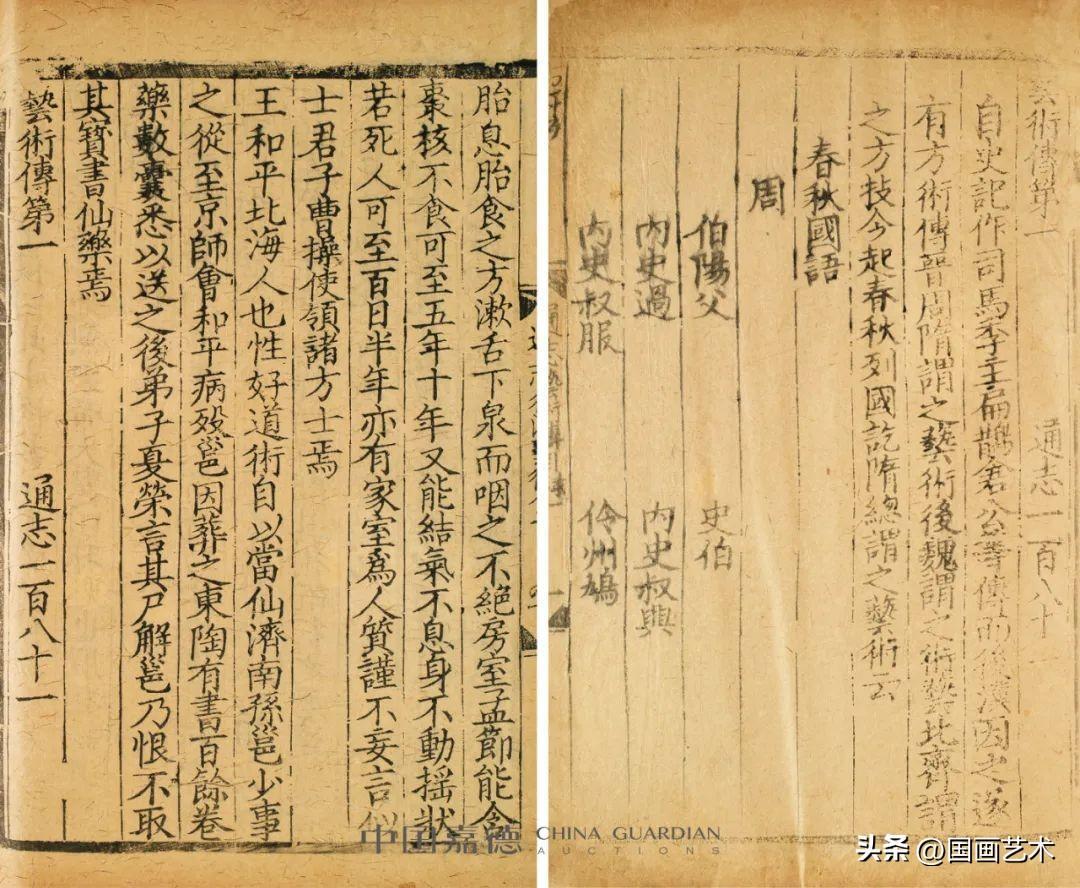 是書系南宋鄭樵所撰紀傳體中國通史,上起三皇,下迄隋代,分食貨、選舉、職官、禮、樂、兵、刑法、州郡、邊防等九門。該書與唐杜佑所撰《通典》、元馬端臨所撰《文獻通考》合稱“三通”。原書二百卷,存卷一百十九(1冊81葉,列傳三十二,系三國孫吳周瑜、魯肅、呂蒙等人列傳)、卷一百八十一(1冊89葉,藝術傳第一,系歷代方士扁鵲、華佗、師曠、左慈等人列傳)。
