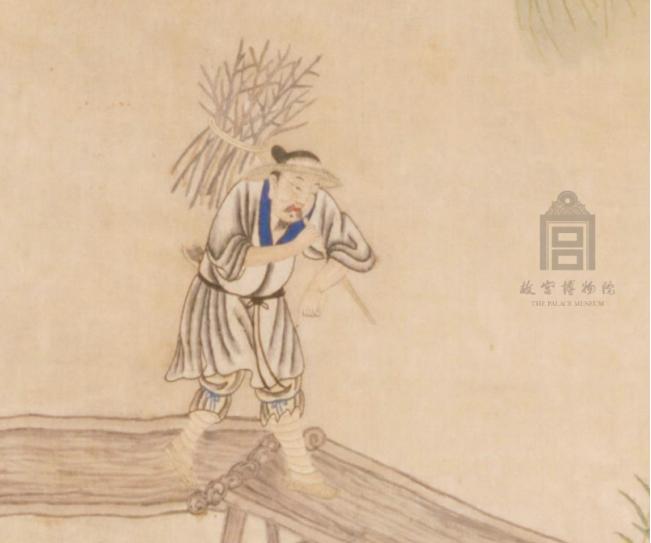清乾隆·顧繡漁樵耕讀圖軸(局部)