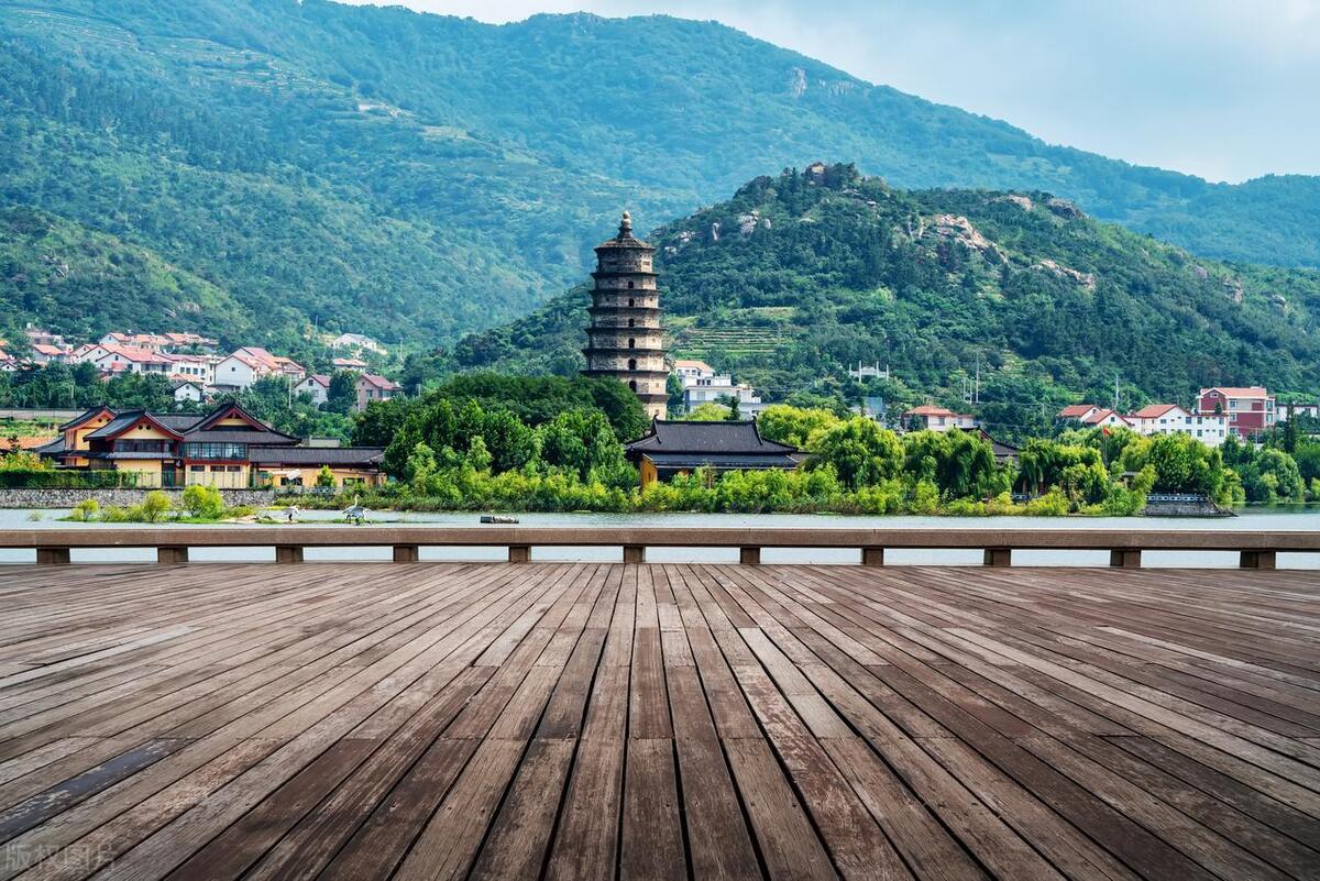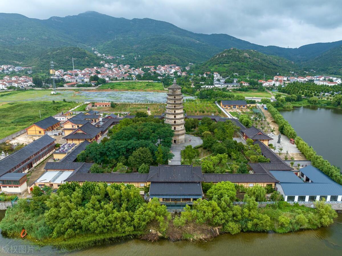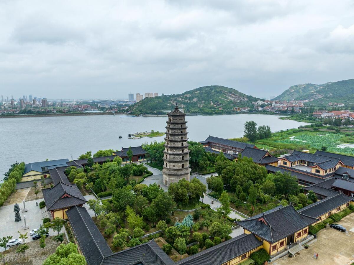 注:連雲港花果山大聖湖之濱屹立着一座千年古塔。它背依層巒疊嶂,面臨千頃碧波,塔身亭亭,倒影歷歷,湖光山色,相映生輝。它就是海清寺阿育王塔,塔旁有一座海清寺。