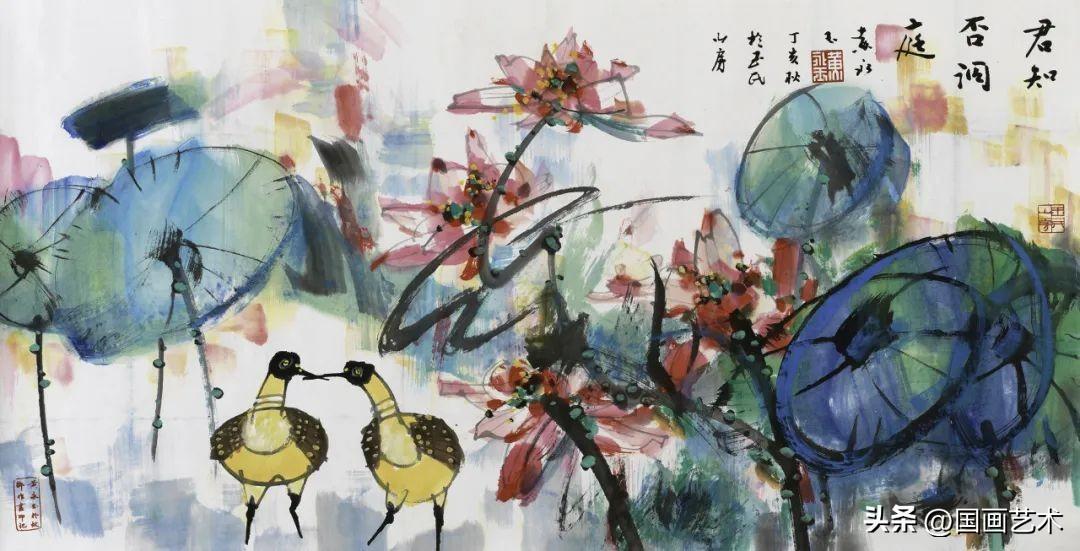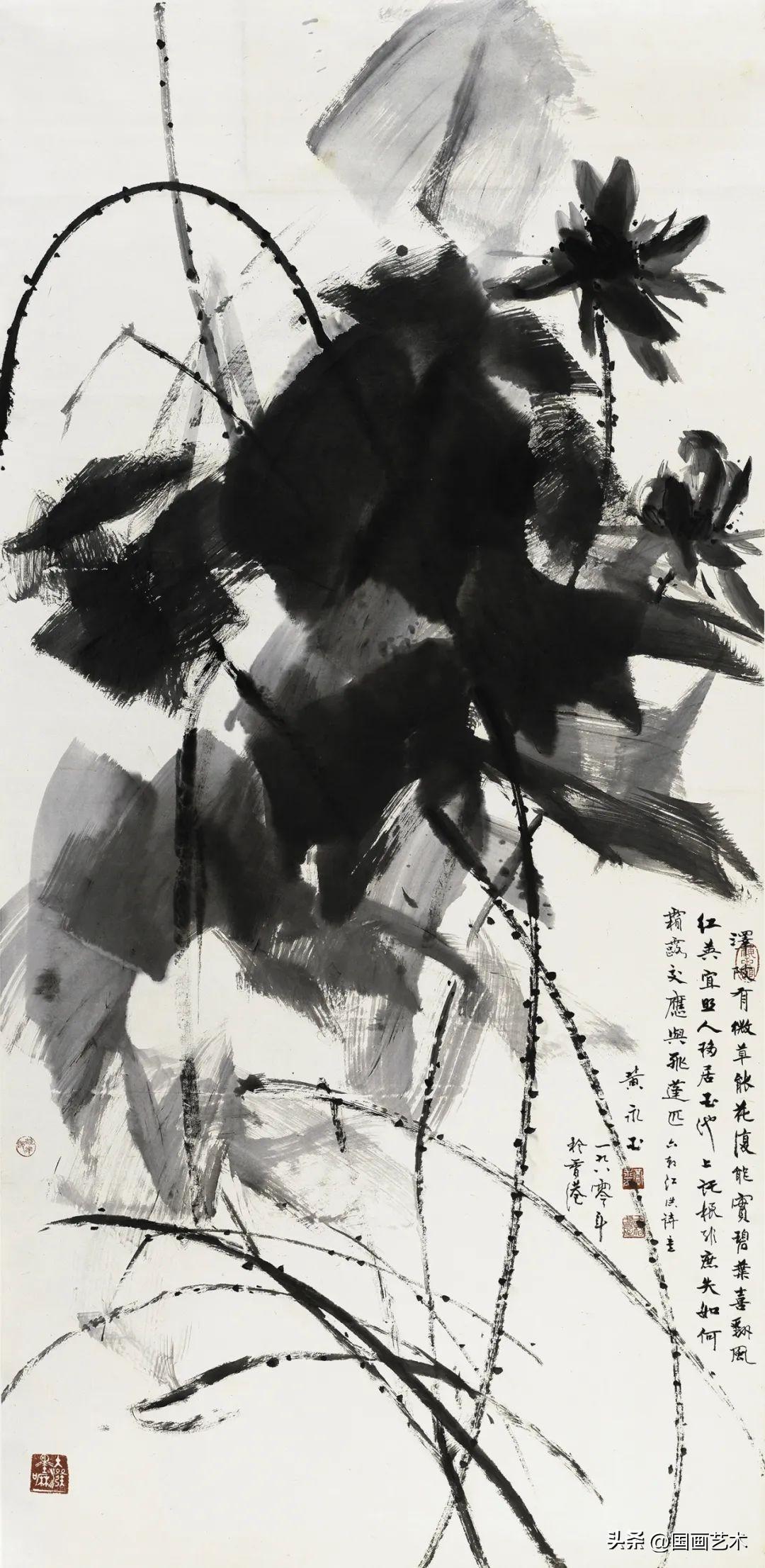 款識:紅荷圖。水上葉田田,我來一長嘆,水下有污泥,馨香無復全。上有紅塵撲顏色,託根非其我宜然。黃永玉丙子夏初於鳳凰。