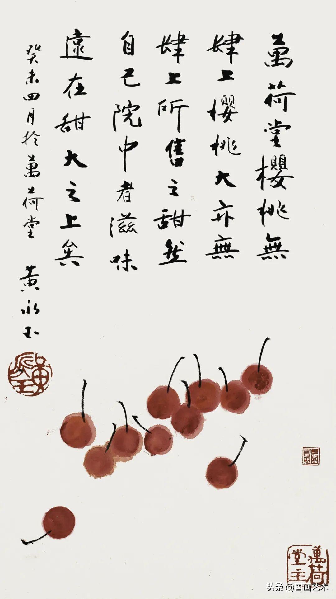 款識:萬荷堂櫻桃無肆上櫻桃大,亦無肆上所售之甜,然自己院中者滋味遠在甜大之上矣。癸未四月於萬荷堂,黃永玉。