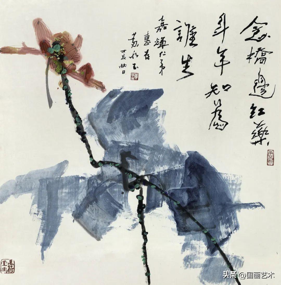 款識:澤陂有微草,能花復能實。碧葉喜翻風,紅英宜照人。移居玉池上,託根非庶失。如何霜露交,應與飛蓬匹。六朝江洪詩意,黃永玉一九八零年於香港。