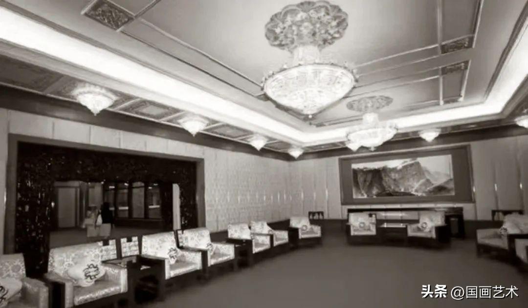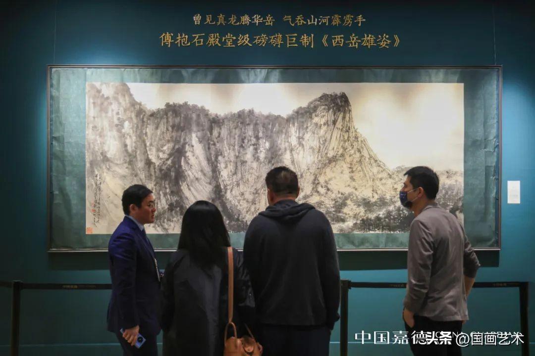 1963年3月,身在杭州陪同長女療養的傅抱石,應國務院外事辦公室副主任兼中國駐緬甸大使李一氓之邀爲正式啓用還未滿四年的釣魚臺國賓館繪製佈置畫。他便以華山爲題作大幅《西嶽雄姿》,題雲:“一九六三年三月,傅抱石寫於杭州。”後來,《西嶽雄姿》佈置於北京釣魚臺國賓館,至今仍在。