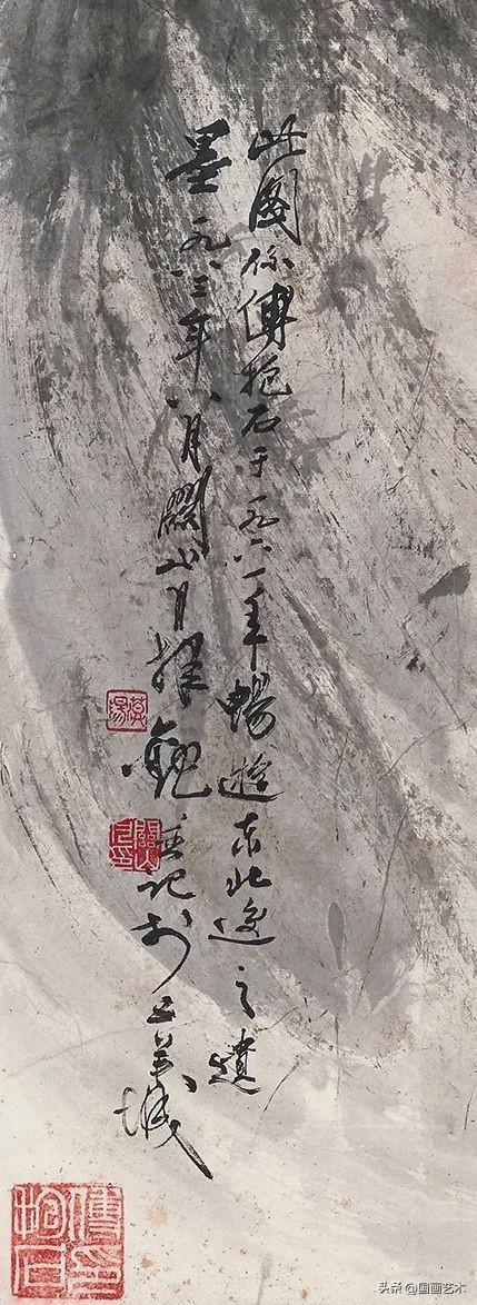 本幅關山月(1912-2000)題:此圖系傅抱石於一九六一年暢遊東北後之遺墨,一九八三年八月,關山月拜觀並記於五羊城。鈐印:漠陽、關山月印