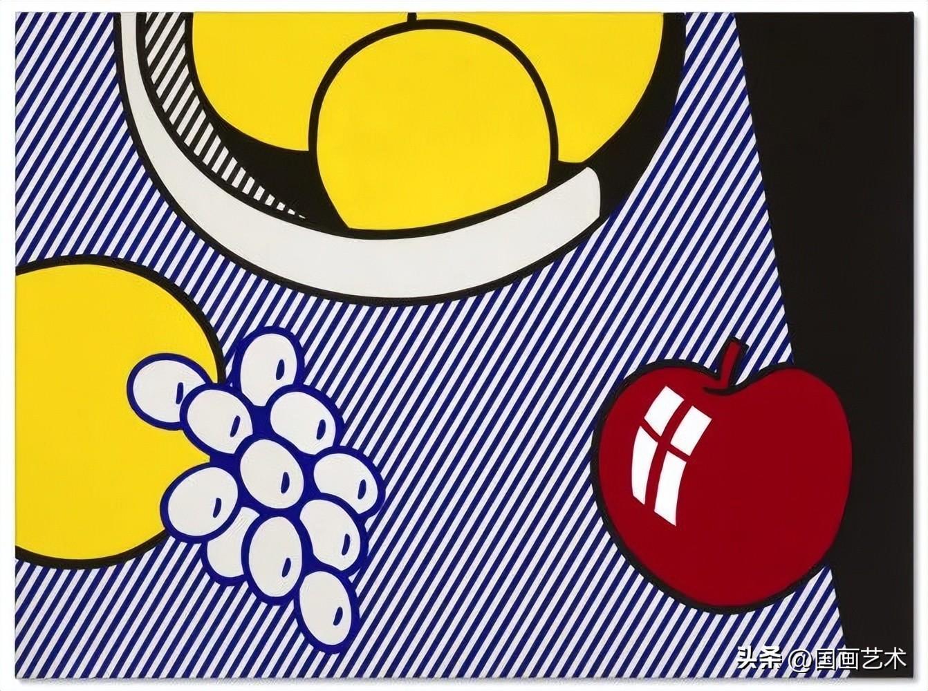 此次春拍亦有幸覓得羅伊·李奇登斯坦極具代表性的靜物作品。這幅作品於1974年繪製,描繪了一個熟悉的傳統自然靜物場景——水果被刻意排列在桌子上。李奇登斯坦對這一受尊崇的歷史類型的創新改造,體現在他使用鮮豔、高調色彩和商業繪畫風格上。在《蘋果、葡萄、西柚》(Apple, Grapes, Grapefruit)中,藝術家將平凡的家庭用品轉化爲超現實的當代文化標誌,賦予他的圖像令人驚歎的幽默感和諷刺意味。