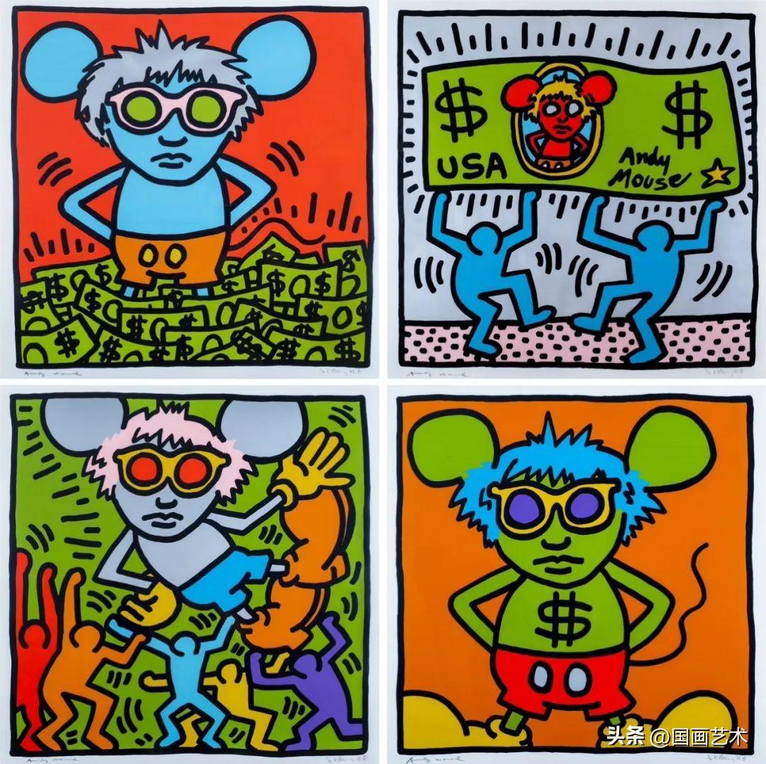 亮相本季香港春拍的作品《安迪米老鼠》(Andy Mouse)就是兩人亦師亦友之鑑證。此幅版畫作品創作於1986年,乃哈林短暫而精彩的生涯中一大曠世佳作,也是兩位藝術家摯友唯一共同簽署的系列作品。哈林將意味着美國流行文化的米老鼠、象徵資本主義的美元符號、及代表波普藝術的沃荷肖像融合,以大膽鮮豔的色塊和極簡的線條呈現了美國資本主義的濃縮影像。畫面中印在美元上的頭像以及被人羣高高簇擁的安迪米老鼠無不反映哈林對消費主義的探討及對其良師益友沃荷的敬意。