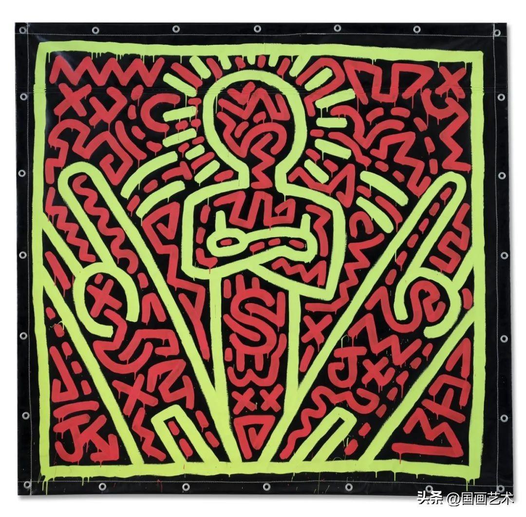 另一件春拍呈獻的矚目之作《無題》(Untitled)作於哈林藝術生涯的爆發之年,該作中耀眼的標誌性視覺符號,是哈林最爲標誌性的風格,並不斷啓發着當代世界。哈林早期是一位街頭藝術家,他在地鐵中快速進行卡通風格的塗鴉。這些在非傳統畫布上肆意流動的線條,日後發展爲簡單卻極具衝擊力的視覺語言,並在1980年代將哈林帶到國際舞臺的聚光燈下。《無題》中,哈林以其風格化、極具記憶力的圖像語言,出神入化地迷住了觀者,並以亮色調(紅與綠)與黑色乙烯篷布並置,高調地刺激着感官,吸引着觀者的眼球。