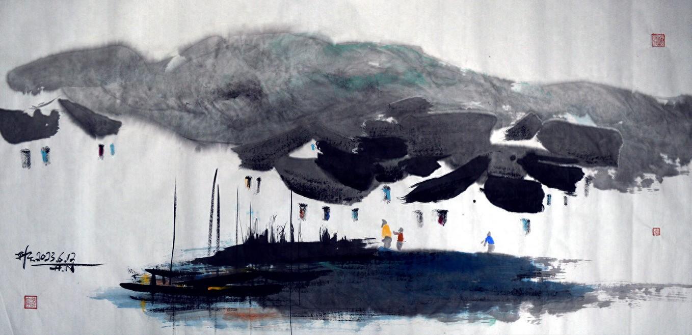 山與水心照不宣,人與自然心照不宣,畫與我心照不宣。它如同一面鏡子般折射出心裏的畫面,有超然之氣與真空之感。水墨是渾濁的,與之相比的宣紙是潔淨的,二者之間你來我往註定產生某種最佳的表現,或有美不勝收之感。