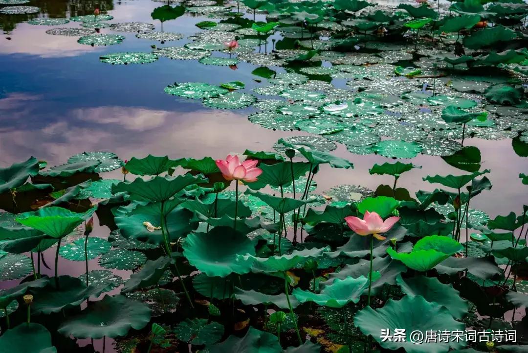 “疏雨池塘見,微風襟袖知。”這兩句化用了杜牧詩《秋思》:“微雨池塘見,好風襟袖知。”意思是說,稀疏的雨點,落在池塘裏;微微的南風,拂過了衣袖。