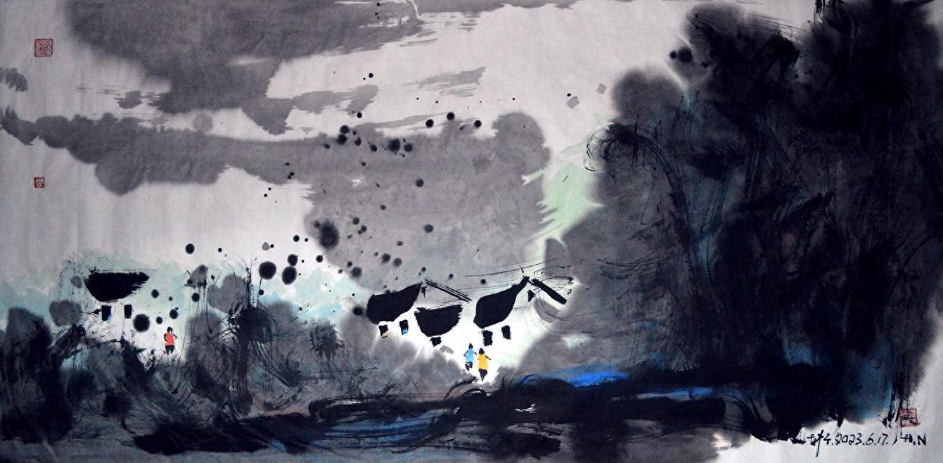 雲裏霧裏,詩裏畫裏,在藝術表現裏,型與色應該如何表現才具有視覺感的繪畫語境呢,而不落入俗套與模式化的表現手法裏不能自拔。像似躲避瘟疫一樣唯恐不及的落荒而逃,越遠越好。