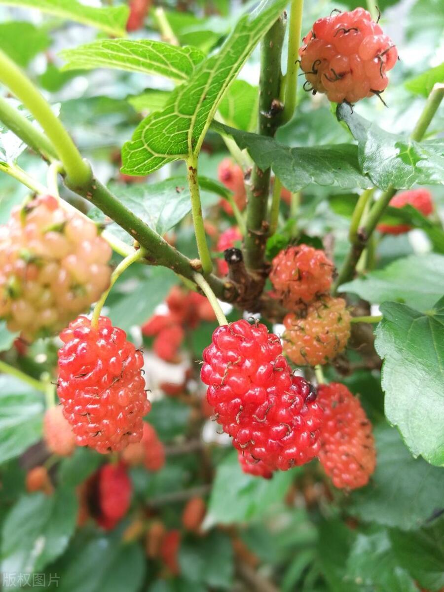 桑椹記錄着親情,也記錄着我們小時候的成長。青龍河岸邊的桑樹長得高高大大,桑樹果紫中帶黑,甜中含香。每年五月份是桑椹子成熟的季節。記得小時候爬到桑樹上摘桑椹,喫的嘴巴上溜黑,摘一顆熟透了的桑椹放到嘴裏,只輕輕一抿,汁水就流了滿嘴,那種香甜的味道,軟糯的感覺,霎時浸滿全身,愜意極了。“時光只解催人老”,多少個星轉鬥移,多少次魂牽夢縈,那段日子好像還在眼前,桑椹對我的誘惑,絲毫不減。