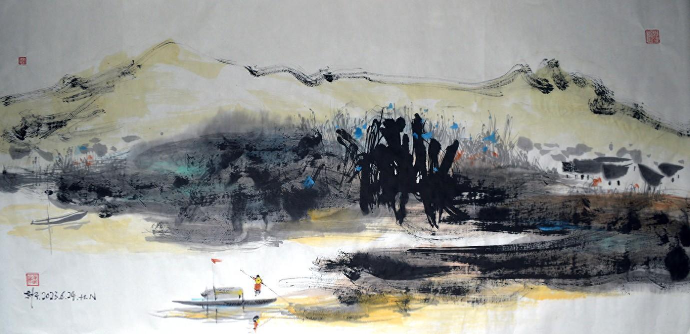 景色宜人處,只在縹緲中。我與桃花源,近在咫尺中。追隨陶淵明,夢裏在遠鄉。畫意雖不及詩意的灑脫,也算是了表了一點意思,給自己一個交代。好好活着,享受生活、享受自然,畫出賞心悅目作品與他人共享。生活其實就是這樣灑脫而呈現出色彩,我們不能拘泥於生活細緻末梢,尤其是與他人生活在一起的時候,釋放自己包容他人才能和諧共存。