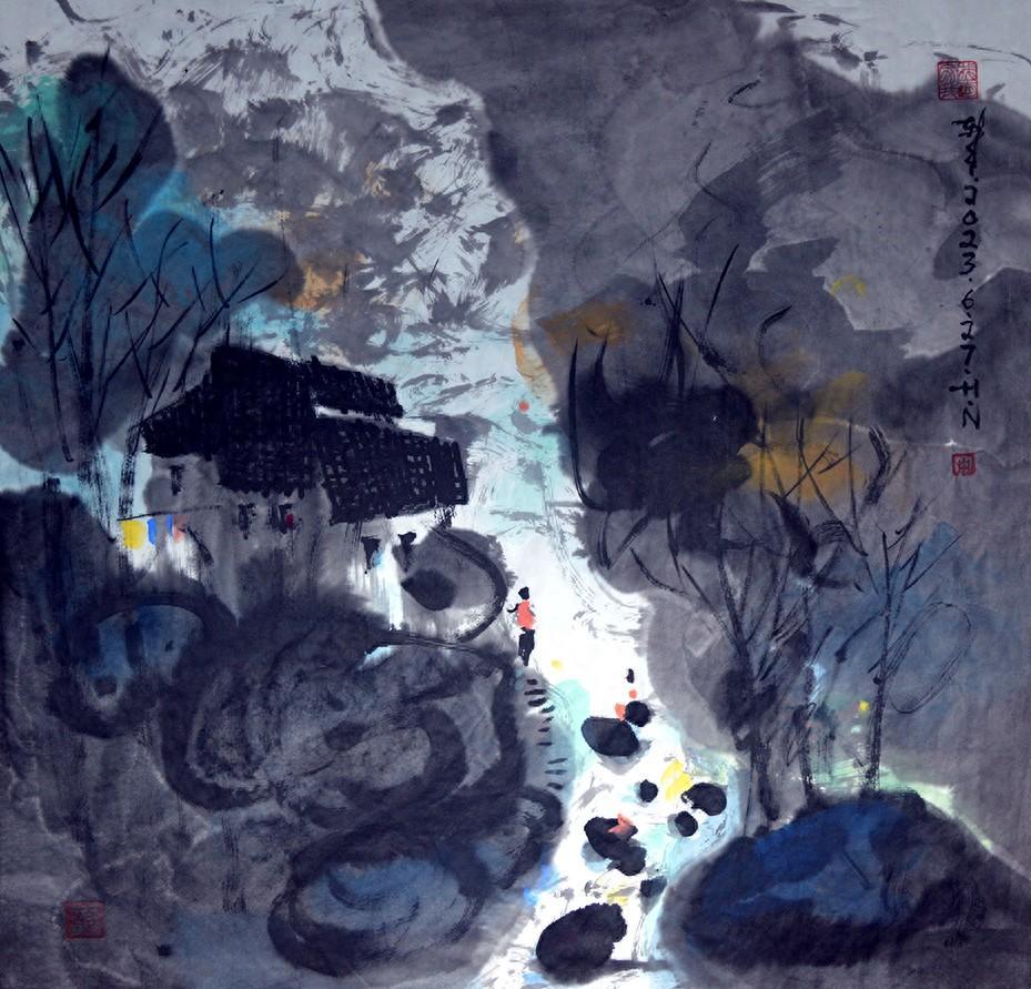 繪畫的感覺、藝術的感覺,雖然兩者都很籠統、抽象,但是,兩者之間還是有很大的區別。一個是應對繪畫表現的技能而言,一個是應對情感的宣泄而言,要把愛恨交加用形象化的視覺語言表現出來,成爲繪畫創作作品的中心內容,無從談起表現的複雜或是簡單,不在功夫而在於表現感覺的需要而爲之,所以就會出現爲我所用的表現形式與筆墨應用的獨特性。