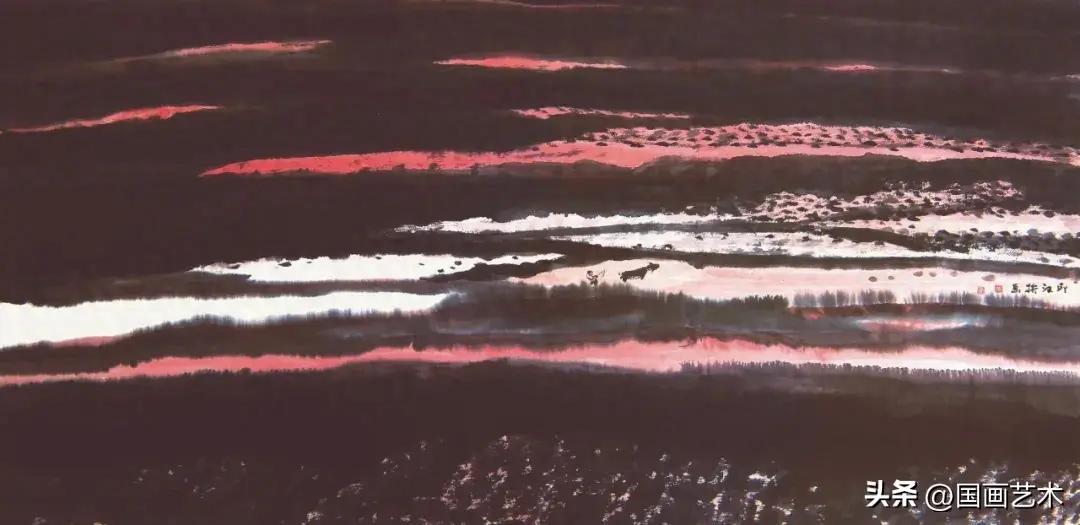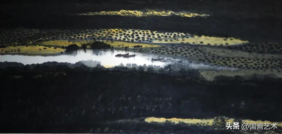 其次,邱漢橋的畫作在技法上獨具特色。他擅長運用層次豐富的墨色,營造出一種深邃而幽遠的氛圍。他的畫面中常常充滿了對比與反差,如幽暗的草木與亮麗的逆光山嶺,深邃的夜空與輕描淡寫的水面漣漪等。這些對比不僅增強了畫面的視覺衝擊力,更使得整個畫面充滿了節奏感與韻律感。